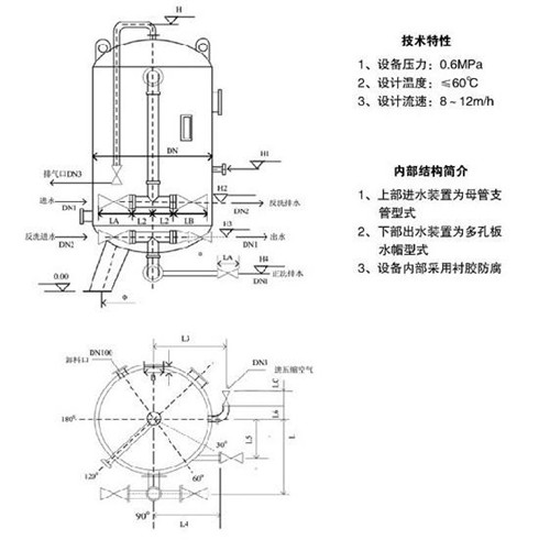 直徑φ800以上的高效纖維球過濾器配備擺線針輪減速器攪拌裝置,反沖洗時筒內充滿水,啟動減速器攪拌裝置,使桶內纖維球過濾器上下滾動容易清洗。